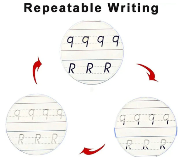 Comfortable Writing Design This is a Magic Copybook that can help children improve their handwriting by demonstrating correct posture. It has a silicone pen holder, which facilitates children to master the method of holding pen. The Magic Copybook can help children practice their handwriting and have fun at the same time!